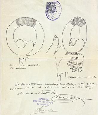Dibujo del pesario ginecológico de la Dra. Concepción Aleixandre Ballester (patente ES 47 109).