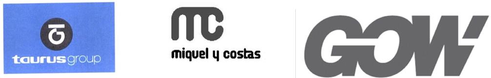 Imágenes de la Marca Europea “taurus group” (EM 3398302), de la Marca Europea “miquel y costas“ (EM 10998037) y de la Marca Europea “GOW” (EM 10237048; cortesía de la base de datos TMView).