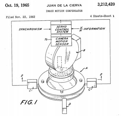 Posteriormente emigró a la Cuba de Batista donde tras diseñar antenas de TV se embarcó en el proyecto de diseño y construcción de un helicóptero cubano, el C-58, pero todo se interrumpió tras el triunfo de la Revolución Cubana, aunque Fidel Castro y el Che Guevara mostraron interés en el proyecto. Juan de la Cierva no tenía intención de compartir sus negocios con el régimen castrista y por ello huyó por ferry a los EE.UU donde comenzó a trabajar en una empresa que construía autogiros y helicópteros. Posteriormente fundó la compañía de aeronáutica Dynasciences. Fue durante esta etapa, en los años 60 cuando inventó la creación que le permitió ganar el Óscar de Hollywood a la mejor contribución técnica de 1969, el Dynalens. Se trata de un estabilizador óptico para evitar los efectos no deseados de movimiento, vibraciones y desenfoque de las cámaras. La invención se le ocurrió cuando trataba de filmar a sus hijos practicando esquí acuático. Vendió el invento a la CBS por 1 millón de US$ y se empleó por primera vez en la película “Tora, Tora”. La US3212420 parece ser la primera patente que protegió al Dynalens:
