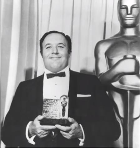 Juan de la Cierva recibiendo el Óscar a la mejor contribución técnica al cine en 1969