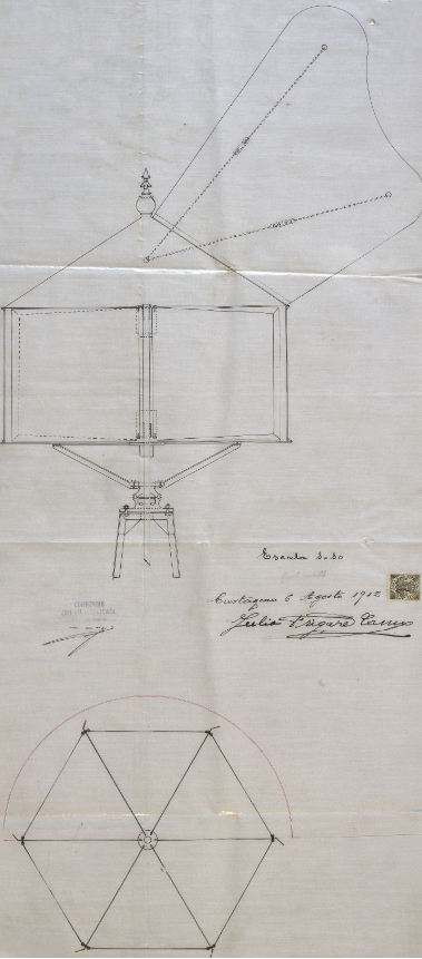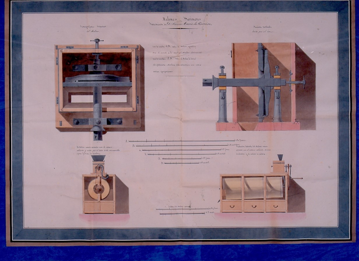La segunda patente que se recoge en la muestra tiene como marco la Ley de 1826, que es la primera ley española de patentes de la contemporaneidad, que fue dada en el reinado de Fernando VII, después de varios decretos anteriores del gobierno francés. Curiosamente la primera patente que se registra a raíz de esta Ley, al igual que el primer privilegio de invención, es un molino, concretamente, un molino harinero mecánico para moler trigo de rotación vertical solicitado por Jean Marie La Pierrere.