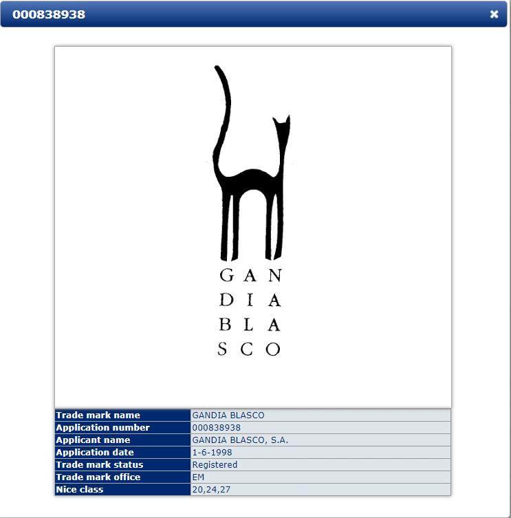 Una de las Marcas registradas por Gandía Blasco para su imagen corporativa (Fuente EUIPO)