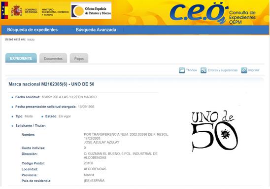La entrada de esta semana está dedicada a UNOde50, un nuevo ejemplo de éxito empresarial basado en la adecuada gestión de la Propiedad Industrial que recoge el libro “La Propiedad Industrial y su influencia en el éxito empresarial” publicado por la Oficina Española de Patentes y Marcas.