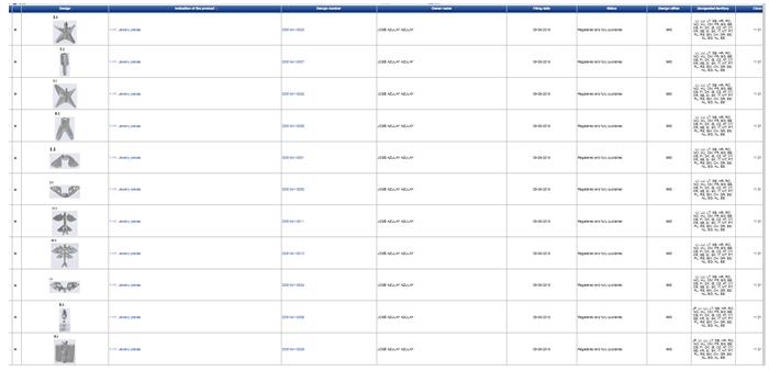 Captura del resultado de la búsqueda de diseños internacionales de UNOde50 en la Base de datos DesignView