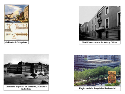 Su existencia legal se remonta a tres Reales decretos de 1810, 1820 y 1824, año este último en el que, definitivamente, se crea la institución bajo el nombre de Real Conservatorio de Artes y Oficios. No obstante, es posible encontrar interesantes antecedentes durante los siglos anteriores. El 16 de mayo de 1902 se promulgó la primera ley española de propiedad industrial, quedando derogadas las leyes anteriores de patentes y marcas. En virtud de su artículo nº 116, esta ley creaba el Registro de la Propiedad Industrial (RPI). En julio de 1992, el RPI pasó a denominarse Oficina Española de Patentes y Marcas (OEPM).