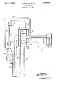 Einstein y Szilard inventaron un refrigerador y diversos perfeccionamientos con el fin de eliminar la utilización de refrigerantes tóxicos, partes movibles y el compresor mecánico. Su principal invento era el refrigerador de absorción (US1781541). Se utilizaba butano como refrigerante y mediante la introducción de amoniaco se reducía la presión del butano y este entraba en ebullición absorbiendo energía y refrigerando. La patente estadounidense fue adquirida por la empresa sueca Electrolux, pero no se llegó a comercializar pues aparecieron nuevos refrigerantes muy eficaces y no tóxicos como los gases clorofluorocarbonados.