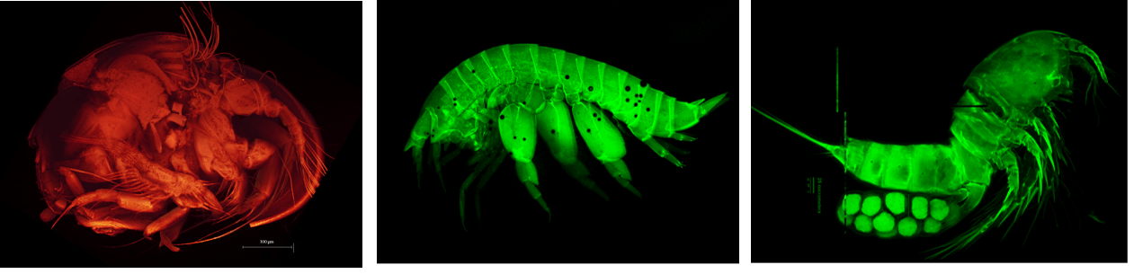 Figura 1: Ejemplos de especies de crustáceos en las aguas subterráneas. a) Cypria ophtalmica (Ostrácodo); b) Niphargus sp. (Amphipodo); c) Bryocamptus sp. (Harpacticoid).