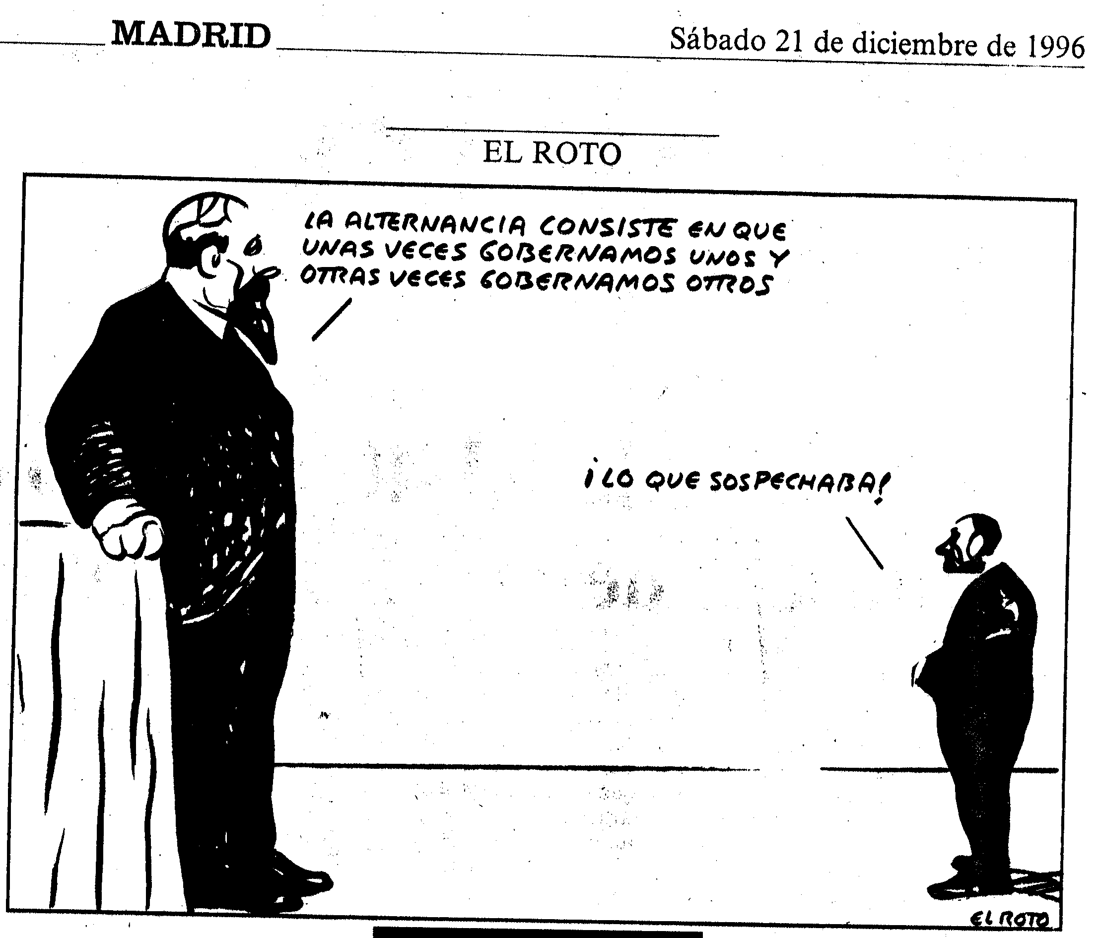 ·        3 de marzo 1996. Elecciones generales en España. Como resultado, el Partido Popular (PP) accede al gobierno de España con el presidente Aznar al frente