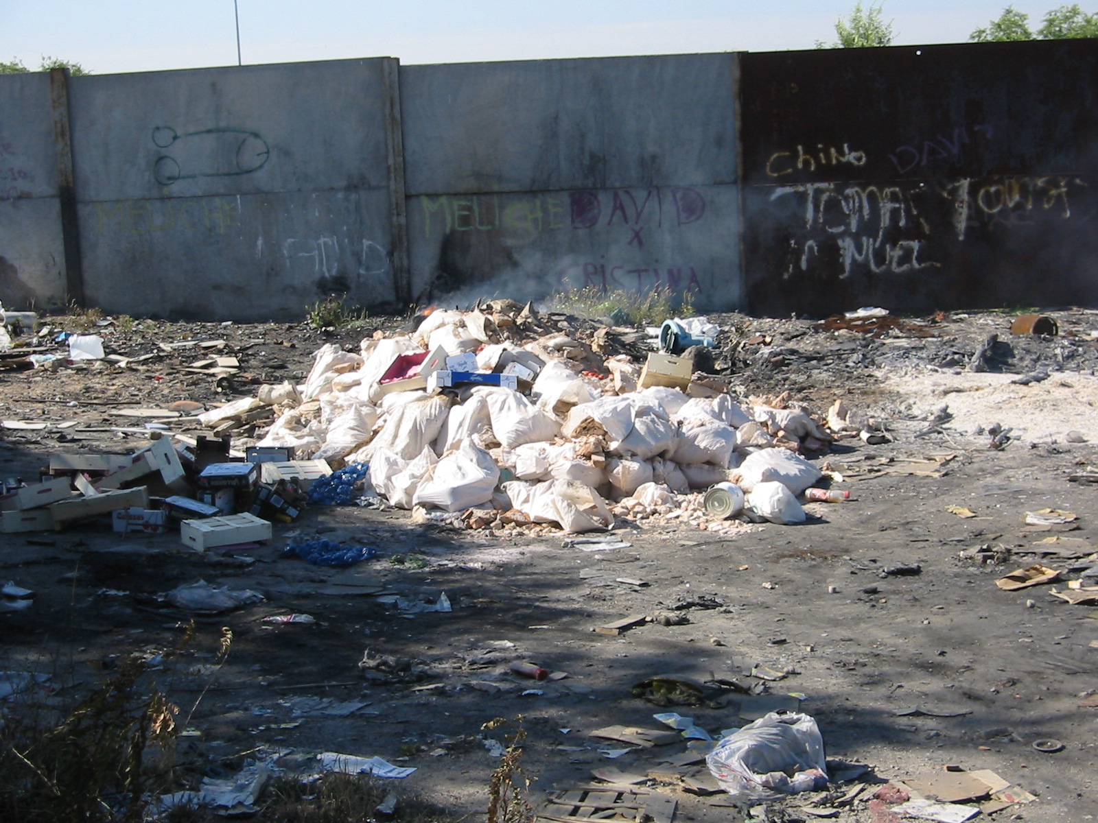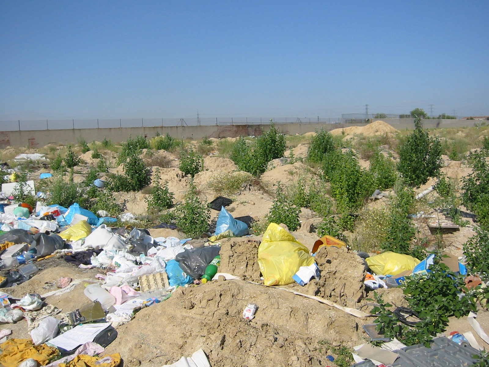 La basura de los vertederos incontrolados no se recoge. Los habitantes del poblado la queman de cuando en cuando. Además en uno de estos vertederos incontrolado se vierten escombros y material de desbrozamiento de jardines que no son generados por los habitantes del poblado.