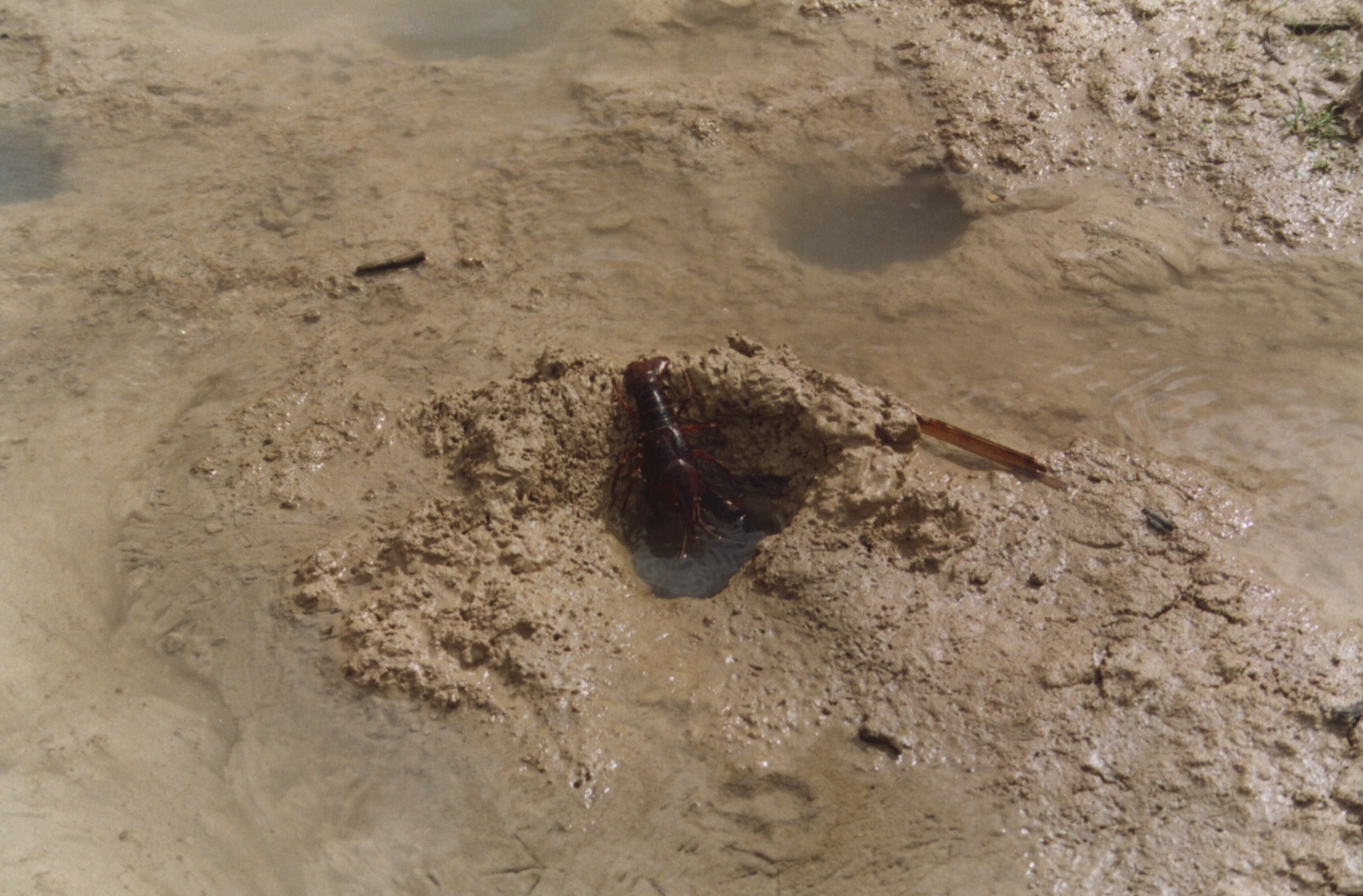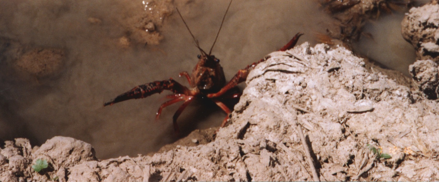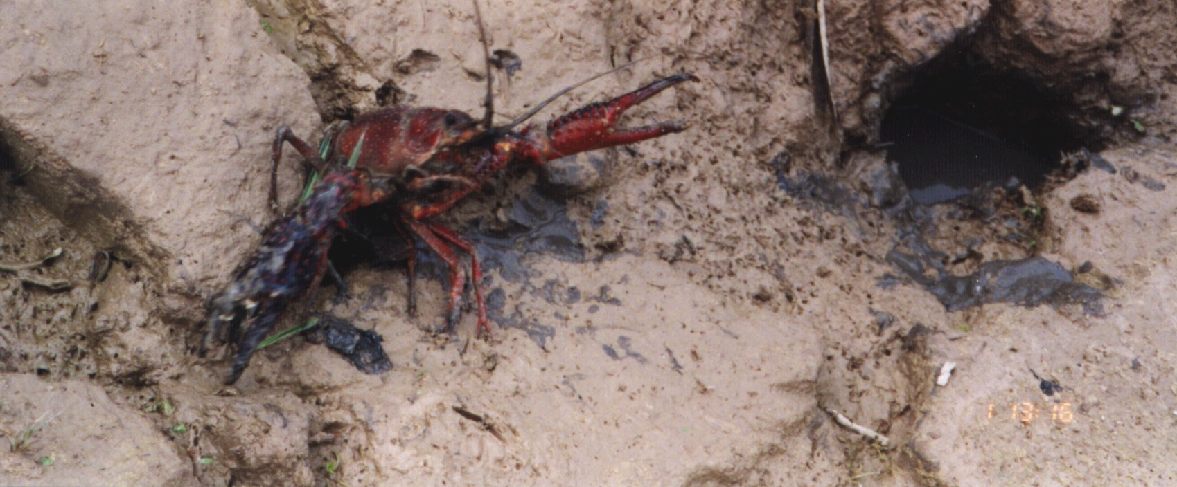 Cangrejo rojos (cubiertos de barro) fotografiados en la zona epidémica del embalse de Buendía (1998)