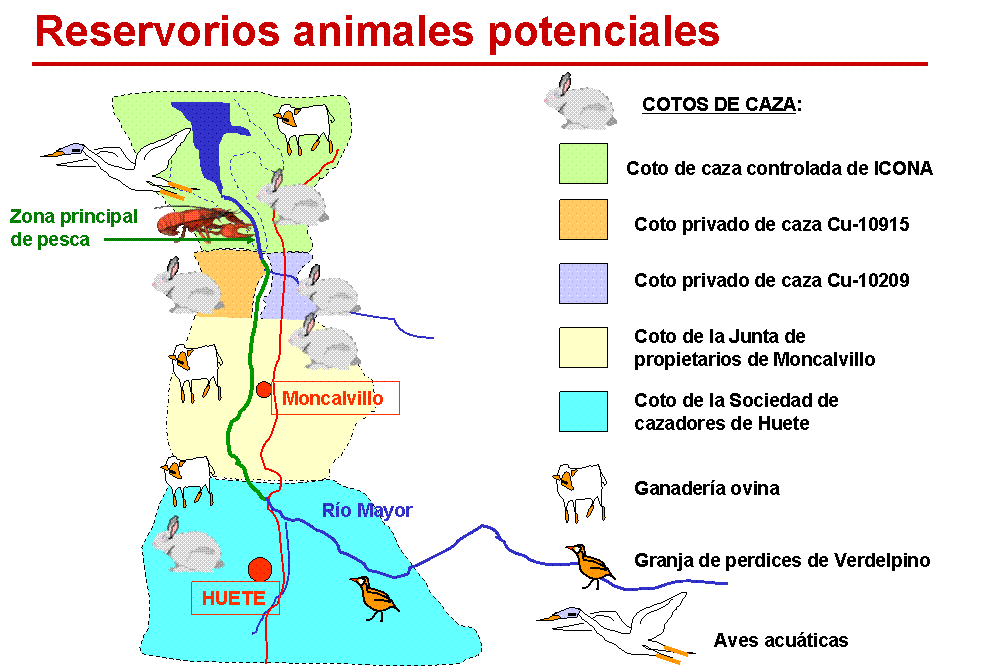 Asi mismo, la investigación de los reservorios animales potenciales para Tularemía en la zona no fueron positivos. Sin embargo, es de destacar que ambas márgenes del tramo autorizado de pesca del río Mayor eran cotos de caza, que incluían caza de liebres.