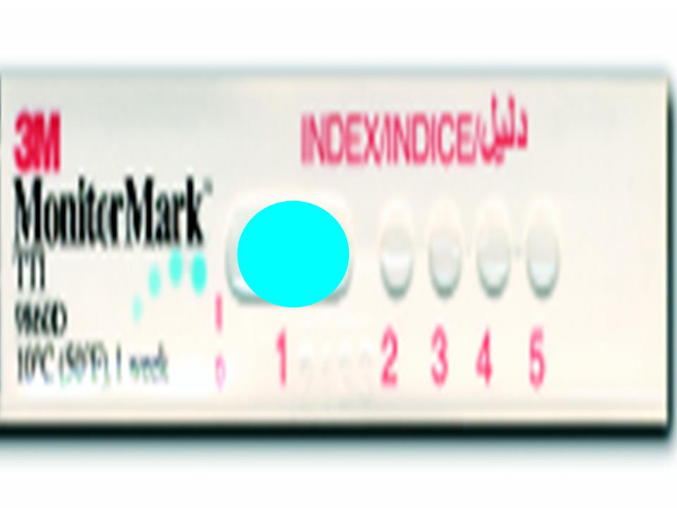 Cuando se sobrepasa la temperatura crítica, el tinte alojado en la almohadilla se derrite, y comienza a desplazarse de izquierda a derecha, impregnando de azul la tira porosa (visible a través de las ventanas de observación). La coloración azul aparece, primero, en la orilla izquierda de la primera ventana y, gradualmente, se va moviendo hacia la derecha hasta llegar a la última ventanilla. La cadencia en el desplazamiento del color azul depende de la temperatura y del tiempo de exposición acumulado.