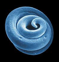 A partir de 10 días tras la infección (mejor después de la cuarta o quinta semana) en la biopsia de músculo estriado puede encontrarse la larva no encapsulada del parásito.