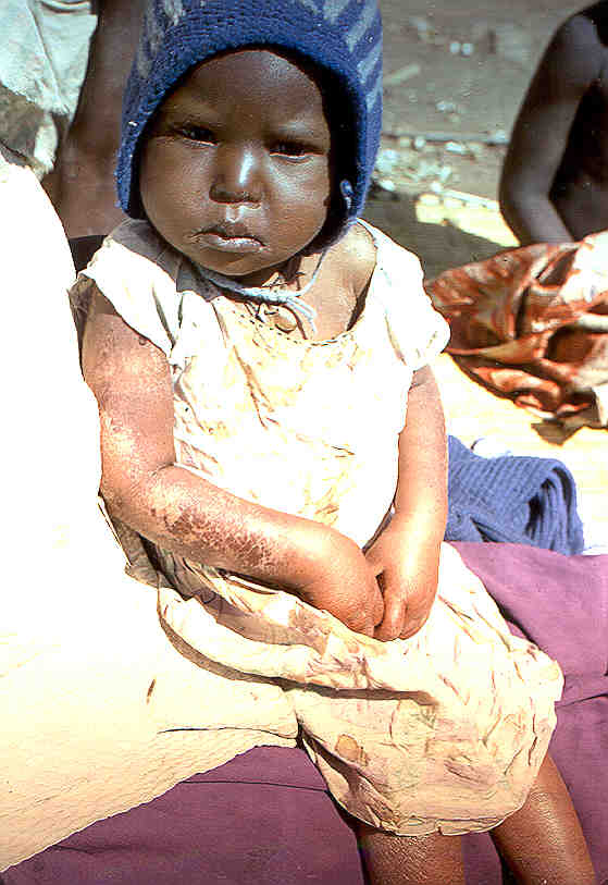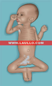 2.-El Kwashiokor que se caracteriza por un fallo en el crecimiento, hay edemas, por lo que el niño no parece que esté delgado y también se mantiene la grasa subcutánea. Este se debe a una ingesta pobre en proteínas.