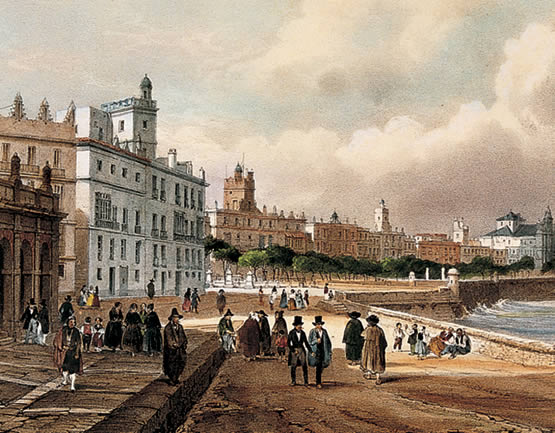 Cadiz,a principios del siglo XIX. Fuente: El Cadiz de las Cortes del XIX www.kalipedia.com