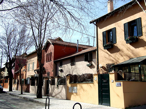 Calle Atalaya, en la «Colonia Prosperidad» de la Ciudad-Jardín de Alfonso XIII. Esta Colonia surge en 1918 como cooperativa obrera de casas baratas y pretendía ser una pequeña ciudad-jardín que aunase ciudad y campo. Fuente: Enrique Fidel “La ciudad jardin madrileña, colonias del ensanche”. Web-blog “Urban-idades. Memorias de las redes urbanas” 29 de septiembre de 2007. http://urbancidades.wordpress.com/2007/09/29/la-ciudad-jardin-madrilena/