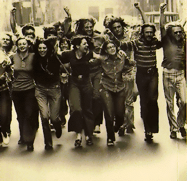 Poster del «Gay Liberation Front». En las décadas posteriores a la Segunda Guerra Mundial, el aumento de la clase media con mejores instrumentos para enfrentar la discriminación sexual, permitió la construcción de la identidad de “gay” y “lesbiana”, a partir de las luchas como las de Stonewall en el Nueva York de 1967, en comparación con la indefensión de los “maricas”, “maricones” y “tortilleras“ de la clase obrera frente a la fuerte represión dominante en su medio. Fuente foto: «The Stonewall Riot and Its Aftermath». From a ’70s Gay Liberation Front Poster (Used on the jacket cover of: Duberman, Stonewall, 1993.) En: http://www.columbia.edu/cu/lweb/eresources/exhibitions/sw25/case1.html