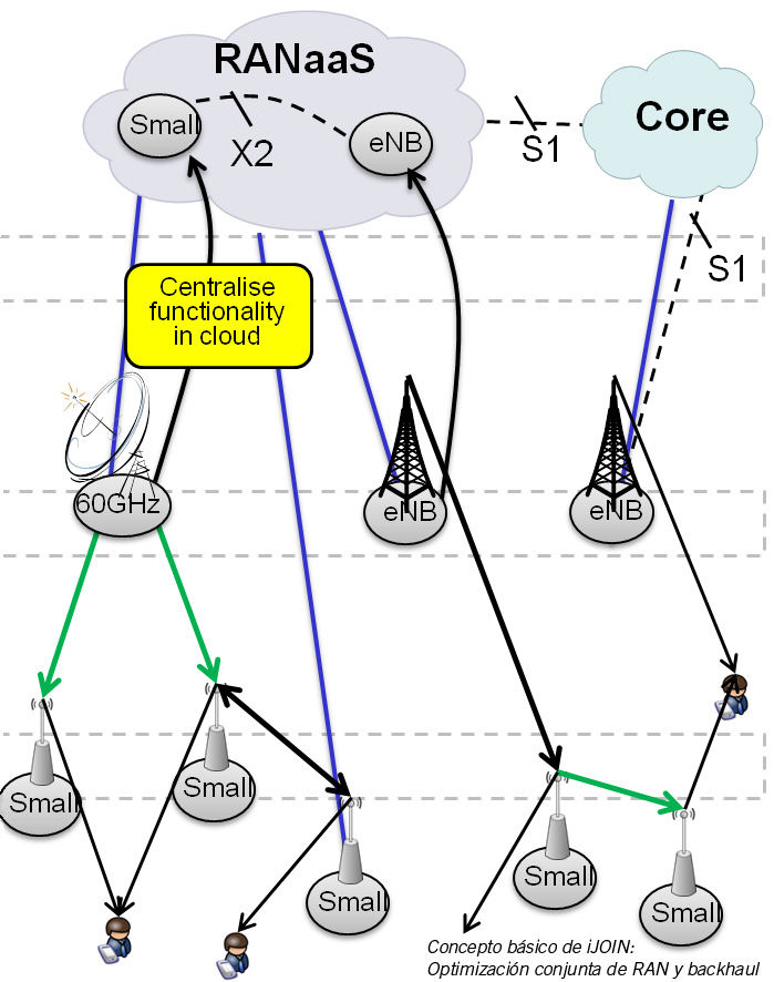 Para ello, el proyecto iJOIN está diseñando una arquitectura novedosa en la que se exporta a la nube parte de las funcionalidades que tradicionalmente son llevadas a cabo de forma separada en diversos elementos de una red móvil. Gracias a esta integración, se espera aumentar la capacidad de la red en un 100% y disminuir su coste en un 90%. Además, se mejorará su eficiencia energética, disminuyendo su consumo en un 95% respecto a las redes actuales. El proyecto iJOIN es una muestra de la decidida apuesta de IMDEA Networks y de la Comunidad de Madrid, motor de la iniciativa IMDEA, por la investigación destinada a la creación de valor y riqueza.
