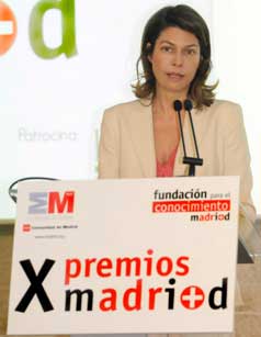 Lucía Figar de Lacalle, consejera de Educación, Juventud y Deporte de la Comunidad de Madrid y Luis Sánchez Álvarez, director general de la Fundación para el Conocimiento madri+d, han entregado los X Premios madri+d que reconocen las mejores patentes, empresas e ideas de base tecnológica, proyectos europeos de I+D en cooperación y comunicación científica. Además se entregó una Mención de Honor a la Cooperación Público-Privada con Resultados de Investigación Comercializados.