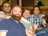 Representantes del equipo de IMDEA Networks premiado en la ceremonia de entrega de trofeos. Son, de izquierda a derecha: Christian Vitale (2º), Aymen Fakhreddine (3º), Ander Galisteo (5º) y Víctor Sánchez (6º).