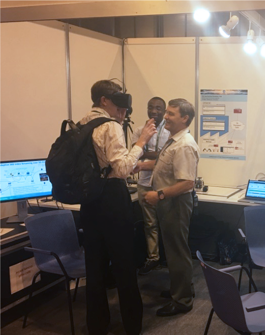 El stand de 5TONIC presentó demostraciones de InterDigital y la Universidad Carlos III de Madrid (UC3M), así como un despliegue que destacó los últimos desarrollos llevados a cabo por el equipo de investigación sobre ondas milimétrica de IMDEA Networks.