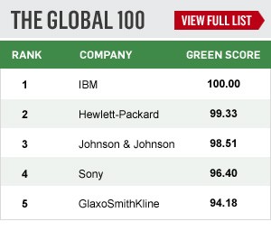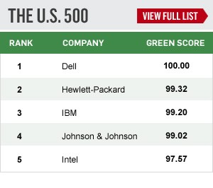 Continuando con la información de Newsweek, las empresas Dell, Hewlett-Packard (HP) e IBM lideran el ranking de empresas más verdes de Estados Unidos (EEUU). El top 5 de esta nueva edición del ranking lo completan Johnson & Johnson e Intel. Johnson & Johnson es la única empresa no tecnológica que se sitúa entre las cinco firmas más ecológicas de EEUU.