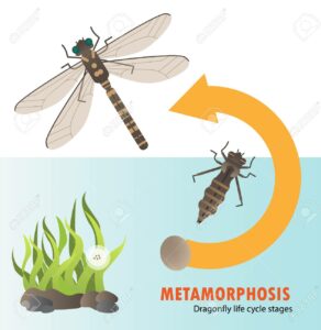 Mencionaba al principio de este post la metamorfosis, ésta la encontramos en la naturaleza el filósofo, novelista y naturalista J.W. Goethe escribió el libro: “La metamorfosis de las plantas”. También está presente en anfibios e insectos entre los que podemos citar la libélula. Este insecto presenta rasgos sorprendes entre ellos sus ojos que les permite 360º de visión que es excelente; pueden detectar colores y luz polarizada. Además hay que mencionar – su vuelo- la libélula es capaz de volar hacia adelante o hacia atrás en línea recta, subir o bajar en vertical, girar en el aire sobre su cuerpo, detenerse en mitad de la nada y flotar, alcanza una velocidad que equivaldría a 200 km/h. en una persona … Que ha sido señalada como un “prodigio de tecnología”.