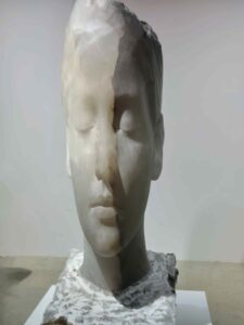 De la exposición también me llamó la atención Invisibles que el escultor representa la metaformosis del ser humano con tres rostros de mujeres hechos de mallas de acero, que permanecen suspendidos en el aire, atravesados por la luz y detenidos en el tiempo, y que me ha hecho recordar r a la socióloga María Ángeles Durán que recibió el Premio Nacional de Sociología y Ciencia Política del CIS , su interés por el ámbito de las mujeres se refleja en artículos de investigación y libros como “La riqueza invisible del cuidado” Y que ha acuñado el término «cuidatoriado» que se refiere al grupo de personas que se dedica fundamentalmente a cuidar, caracterizado porque la mayoría son mujeres, no cobran remuneración por realizar su trabajo.