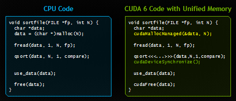 Se antoja una de las mayores mejoras de la plataforma CUDA de toda su historia, pues para trabajar con datos en memoria gráfica ya no serían necesarias las copias explícitas de un dispositivo a otro (a menos que se requiera exprimir al máximo el rendimiento). Esta memoria unificada abrirá la puerta a nuevos programadores de una manera más cercana, lo que, al fin y al cabo, es facilitar la adopción de la tecnología, lo que NVIDIA siempre llamó la «democratización de la supercomputación» (democratized supercomputing).