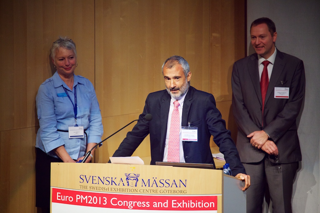 José Manuel Torralba, co-director del Grupo de Tecnología de Polvos (UC3M) y Director Adjunto del Instituto IMDEA Materiales, ha sido premiado por la European Powder Metallurgy Association (EPMA) con el Special Service Award 2013, premio que le fue entregado en la sesión plenaria del EUROPM’2013, en Göteborg, Suecia, el pasado 16 de Septiembre.