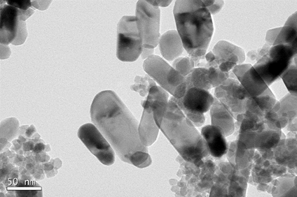 La línea central de investigación desarrollada entre la Universidad Carlos III de Madrid e IMDEA Nanociencia se centra en la síntesis y caracterización de nanoestructuras híbridas de óxidos de hierro con óxidos de zinc mediante co-precipitación, descomposición térmica y método solvotérmico. El procedimiento de síntesis sugerido es sencillo, eficaz en el tiempo y alivia la necesidad del uso de operaciones complejas. Además, la síntesis de las nanoestructuras de óxido metálico se puede llevar a cabo a temperatura ambiente, mientras que los tensioactivos que rodean a las partículas en la solución pueden ser fácilmente eliminados. Por lo tanto, desde la perspectiva de la energía y el tiempo, la estrategia sugerida puede proporcionar un procedimiento eficiente. Además, dicha ruta de preparación se puede utilizar para la formación de las nanopartículas catalíticas muy finas, que son altamente eficientes para aplicaciones fotocatalíticas. En la Figura 1 puede verse una micrografía en TEM del sistema híbrido γ-Fe2O3-ZnO.