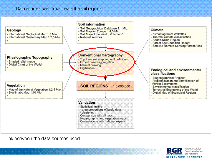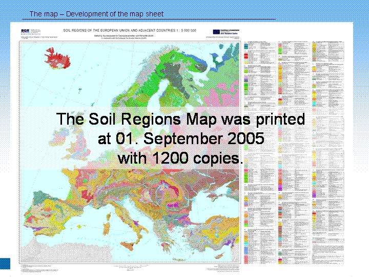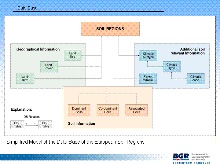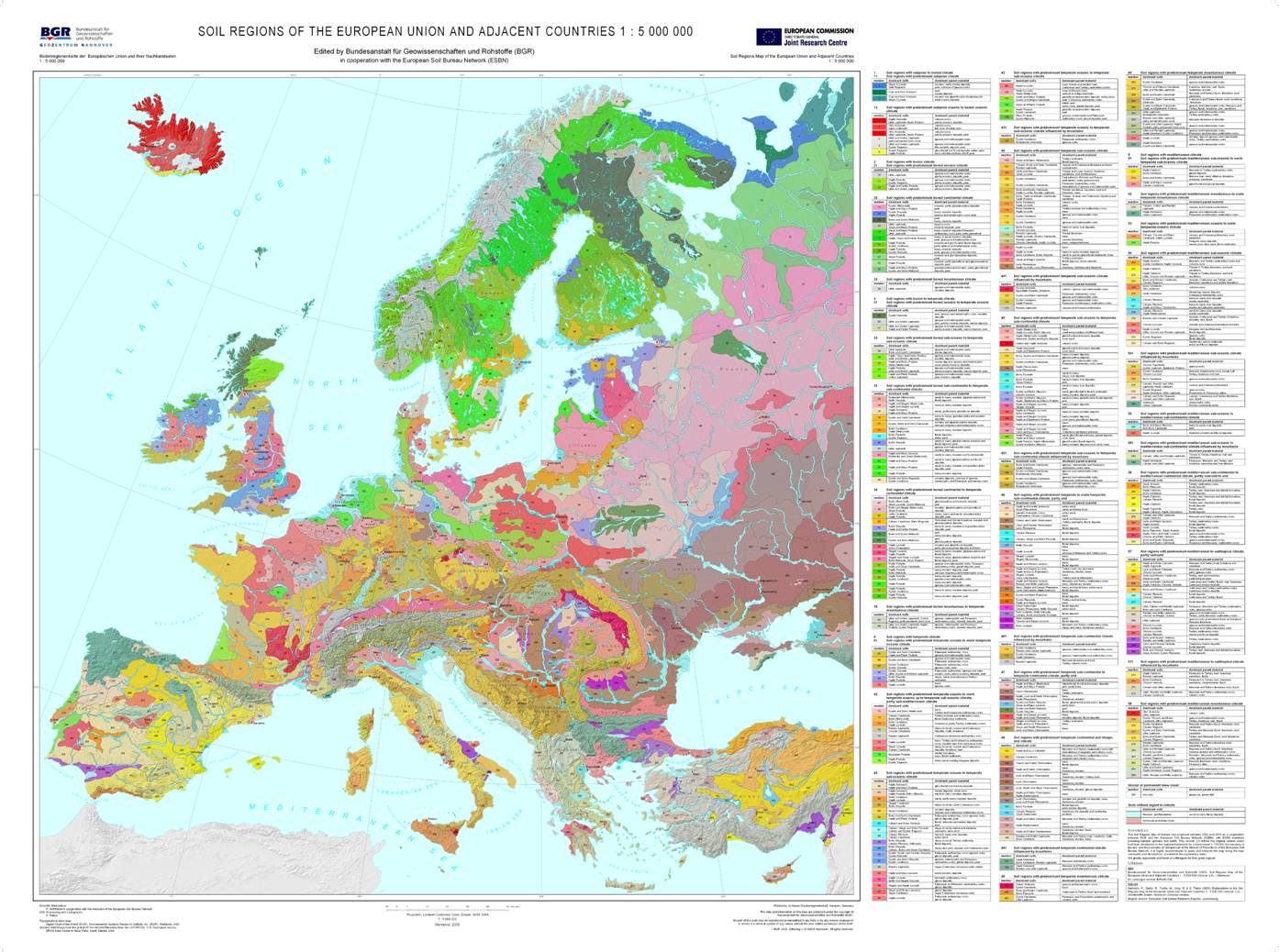 Una Base de datos Georeferenciada de los suelos de Europa (versión en castellano) puede bajarse del siguiente enlace. En el catálogo de archivos que muestra el European Soil Portal en el siguiente enlace, puede bajarse una presentación en ppt en la que se describe la “presunta” racionalidad del Mapa de Regiones de Suelos de Europa elaborada por el BGR (ver la presentación “EU Soil Region Map”, impartida por Rainer Baritz, del BGR).