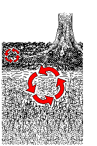 Las enormes raíces de los árboles forman una malla formidable que retiene el suelo entre su entramado ramificado fractalmente. Al derrumbarse nuestro amigo arbóreo, su sistema radical queda al aire, arrastrando con cientos de kilos y quizás alguna tonelada (dependiendo del tamaño) del suelo ubicado bajo su parte emergida o epigea. Tal vacío se rellena paulatinamente, poco a poco, por los materiales que previamente lo conformaban, pero también por la hojarasca que cae en ellos y materiales en suspensión o que llegan allí de otra forma (por ejemplo, arrastrados por la escorrentía superficial en laderas pendiente). ¿Podría ser un mecanismo que enriqueciera los horizontes profundos de carbono orgánico? Tal vez. Simplemente no se ha estudiado con rigor.