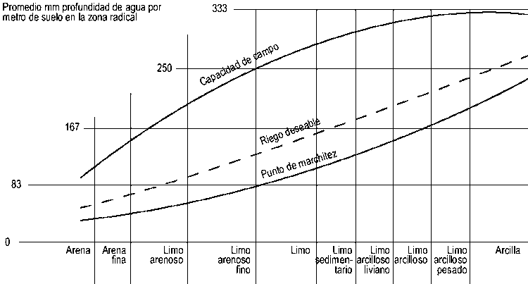 Es cierto que suelos de diferente textura poseen un potencial diferente de almacenar agua, como puede observarse en la figura inferior. Ahora bien es la porosidad que generan los agregados la que va a determinar, en gran medida, el comportamiento del agua en el suelo.
