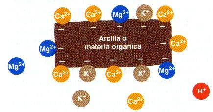 En un suelo con pH ácido, los iones H+ reemplazan a los de Ca2+, Mg2+ y K+, los cuales son posteriormente lavados del suelo, disminuyendo la riqueza de nutrientes disponibles. En un suelo de pH neutro o básico los iones de Ca, Na y K reemplazan a los de H