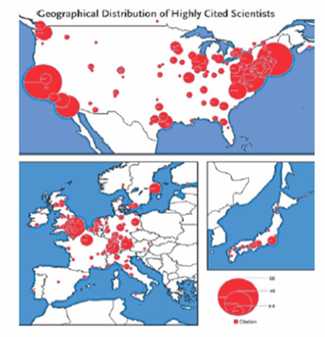 De todo ello ya hablé (e incluso por casualidad hice uso de “otro tipo de brecha digital” hace unos tres años en una Conferencia que di en el CIMA, de que extraigo la foto sobre los mapas que hoy se denominarían webmétricos o cybermétricos (ya estamos con la acronimofilia) y alguien me acusó (por la espalda, porque a la cara hace falta más valor) que no tenía autoridad científica para hacer tal tipo de valoraciones (¡borrico él, que yo ya había publicado en la mejor revista de la especialidad: Scientometrics). El trabajo mentado es de libre acceso en la Web: “La Investigación Medioambiental en España”. Pues bien miren en la página 69 y podrán comprobarlo. Pues nada lo dicho, sigamos tocando la gaita. Pero dejemos de llorar porque da pena y el ciudadano comienza a asquearse. Eso sí, cuando nadie quiera venir a estudiar a las universidades españolas no nos quejemos, ya que si lo hacen a lo peor van directamente al paro, vista nuetro posicionamiento en el mencionado ranking.