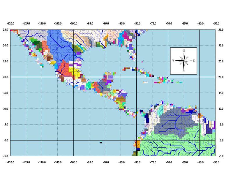 Con vistas e analizar tal cuestión haremos uso de dos ejemplos, a saber, la distribución por tamaños de las masas terrestres emergidas (producto de la tectónica de placas) y del esculpido de estas en cuencas de drenaje según, sus respectivas extensiones, superficiales por acción de los agentes erosivos a escala geológica, es decir los que configuran el modelado o fisiografía que podemos observar. No nos detendremos a explicar de nuevo lo que son las leyes de escala y los fractales, por cuanto dimos cuenta de ellos en el segundo de los tres post mentados.