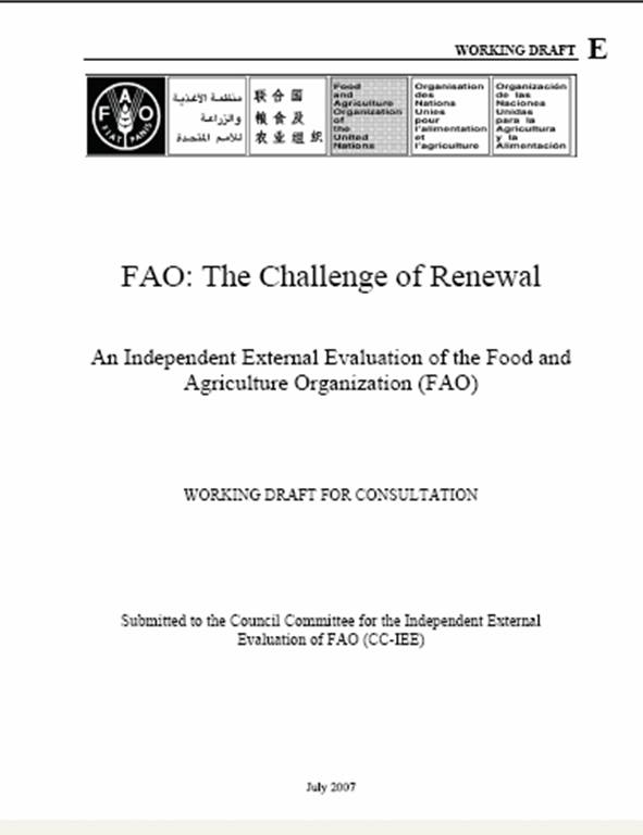 […] Ibáñez el 20 diciembre, 2013 Comentarios (0) TweetA finales de agosto de 2007 os anuncié que Las Autoridades de la FAO fueron Recriminadas en una Evaluación Externa por Su Rácana Política en…. Sin embargo, hemos ido analizando en diversos post que preceden a este que la situación ha virado […]