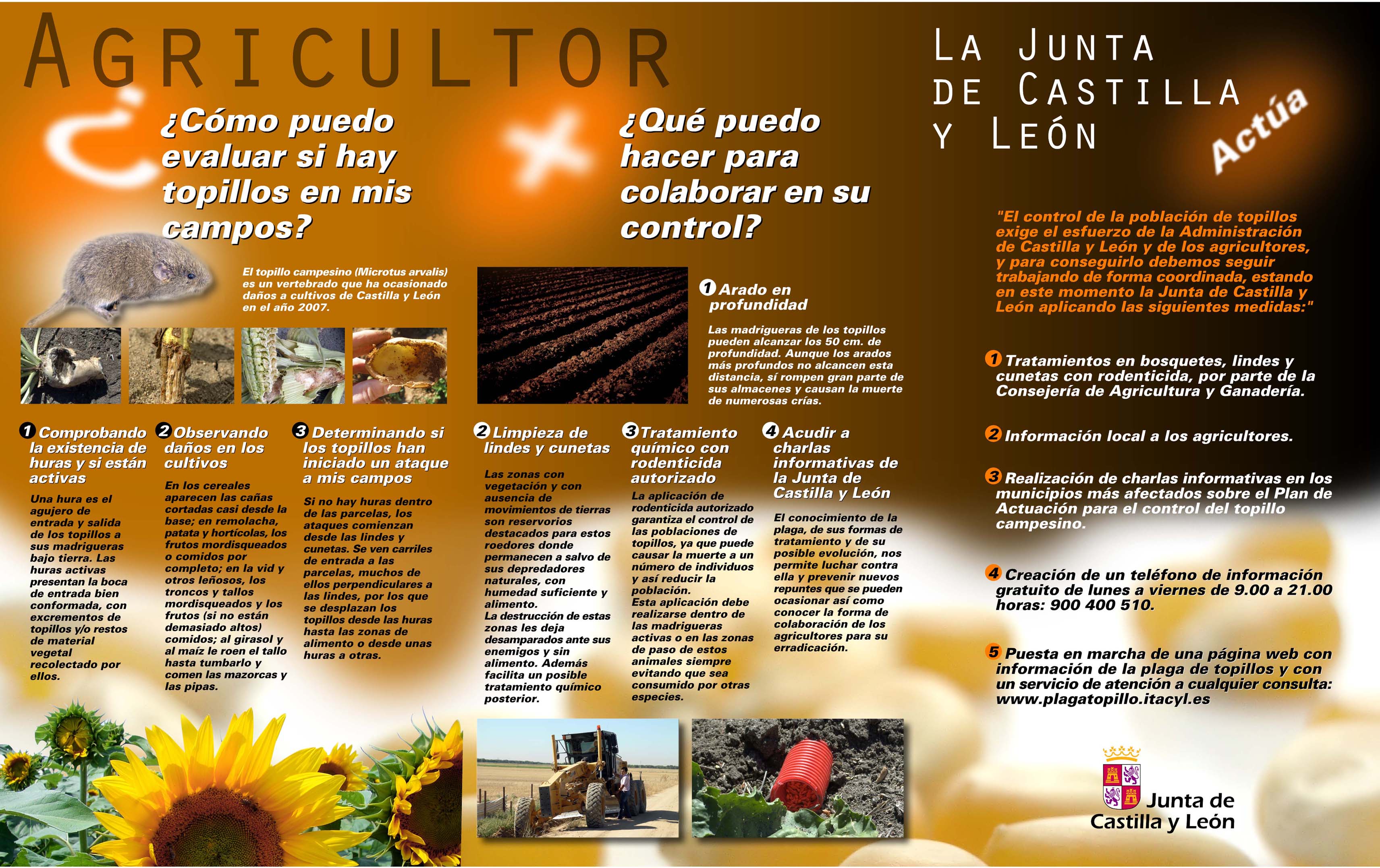 También se ha puesto en marcha un teléfono gratuito -900 400 510- dirigido a los agricultores para que planteen cualquier duda que surja y estará operativo de lunes a viernes de 9 a 21 horas. Además se ha habilitado una página Web con información sobre la plaga de topillos y con un servicio de atención para cualquier consulta. La dirección es www.plagatopillo.itacyl.es