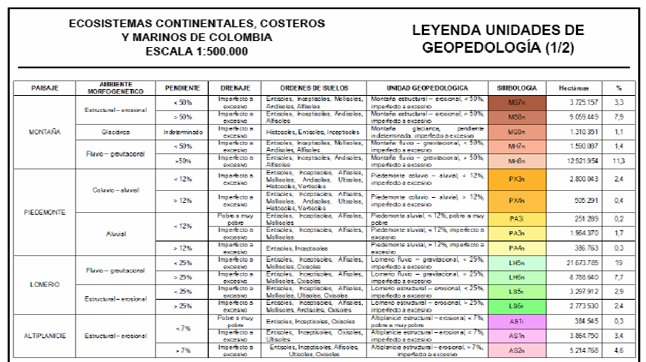 Por lo que respecta a los suelos de Colombia puede leerse la siguiente información pinchando en este último hipervínculo: