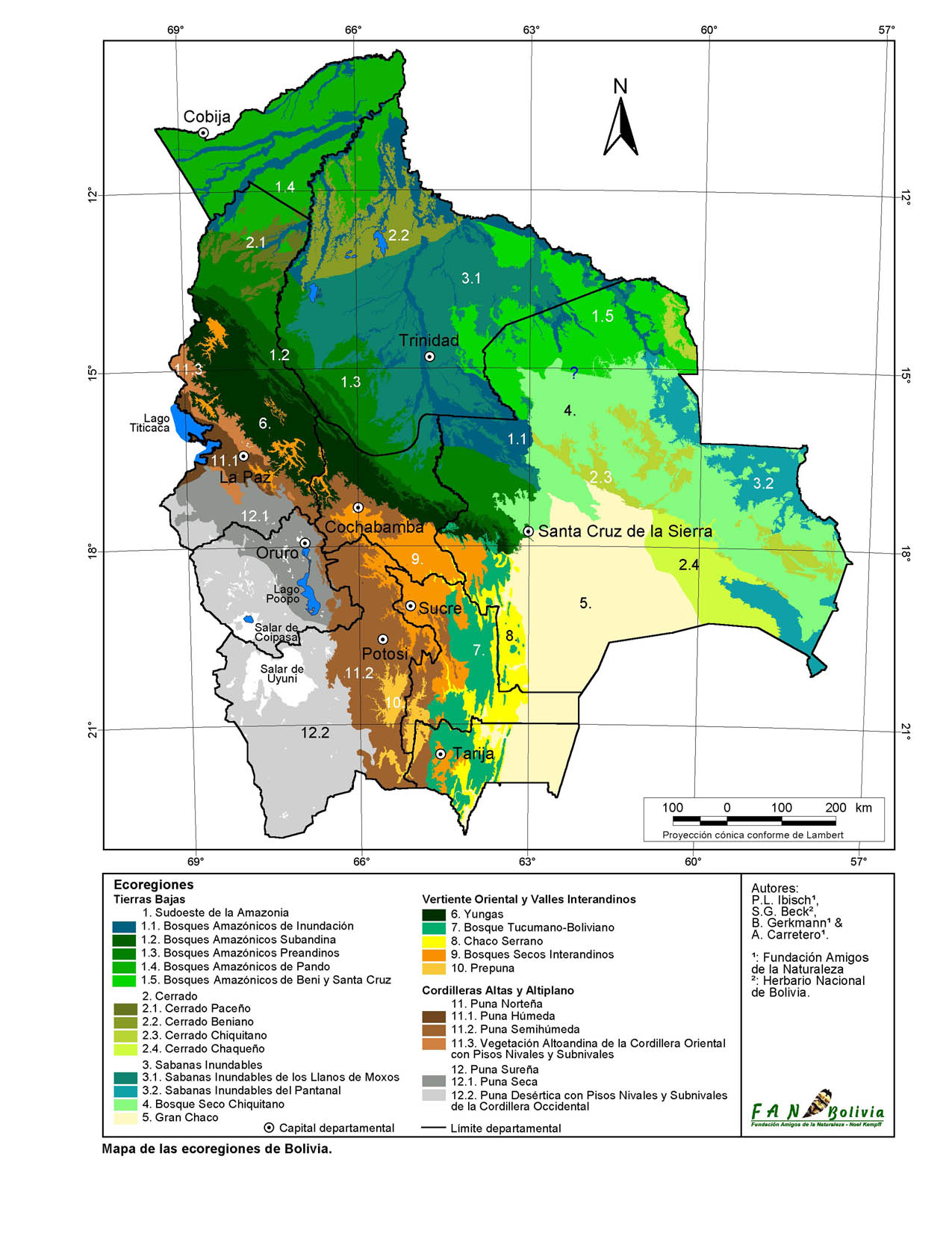 Mapa de Ecoregiones de Bolivia (Fuente: Fan Bolivia)