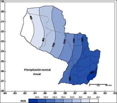 Mapa de Precipitaciones del Paraguay. Fuente: ver el texto