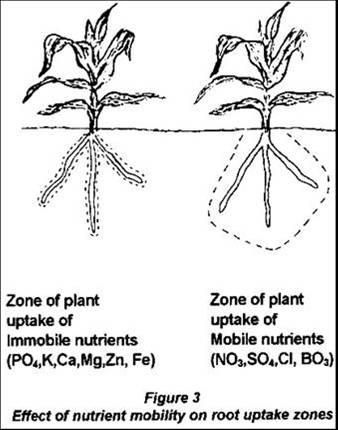 El tipo de raíz y su profundidad determinará la zona de aprovechamiento del N, considerando el riesgo de lixiviación que general su gran movilidad en el suelo. El N que se encuentra en el área de aprovechamiento radical se lo denomina disponible. Cada cultivo (anual, pasturas, frutales, etc.) tienen una arquitectura radicular y una profundidad de raíces específica. Es bastante aceptado que los cultivos de grano anuales, pueden alcanzar una profundidad de 2 m, mientras que en frutales esta profundidad es muy superior y en especies como las hortalizas de hoja, la mayor acumulación de biomasa radical se puede concentrar en pocos cm de profundidad.