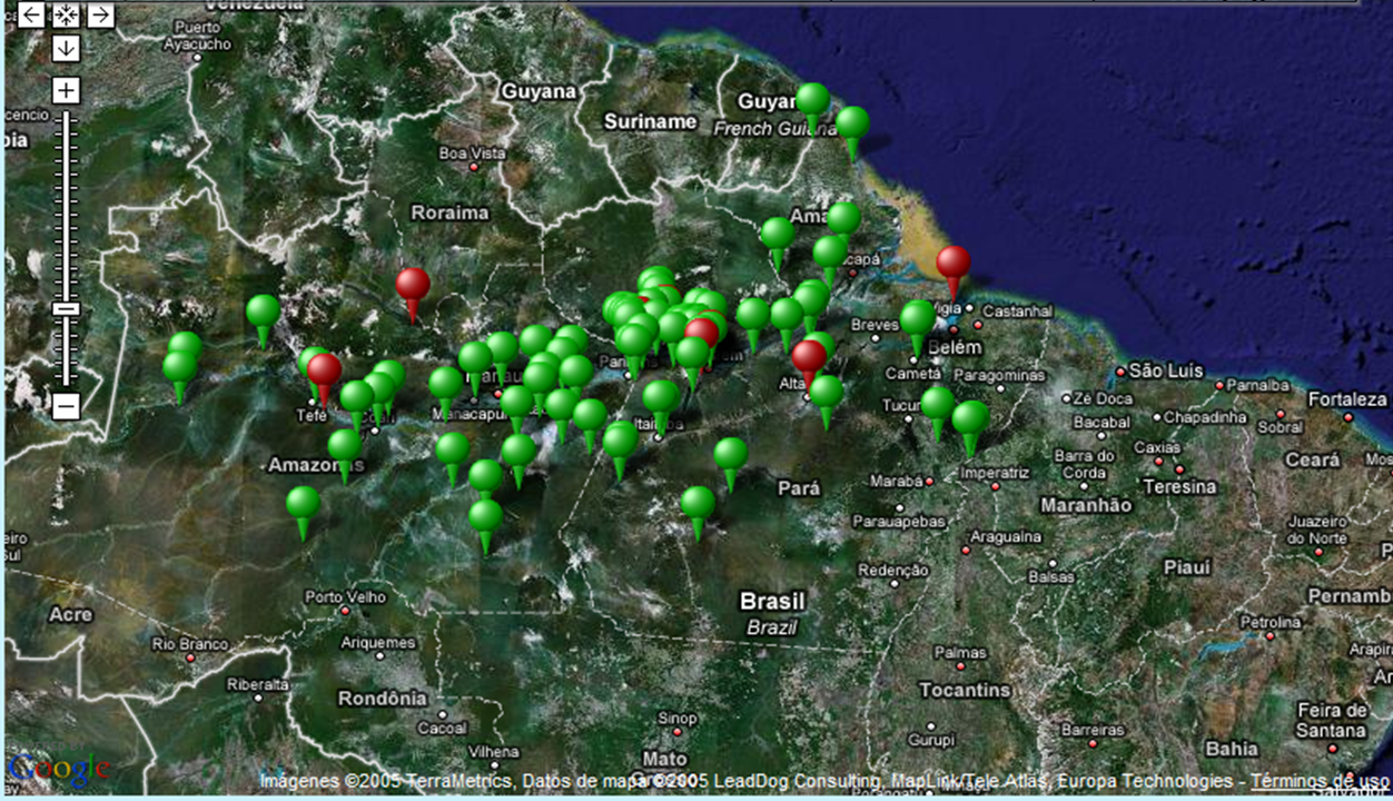 Mapa de la Ditribución de Terras retas en el Amazonas