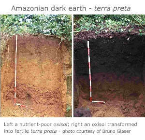 ¿La terra preta de indio no puede ser simplemente una cuestión de cantidad de carbón añadido? Los indios se pasaron generaciones y generaciones echando carbón y ceniza de los hogares hasta que finalmente cultivaban sobre cabrón y estiércol.