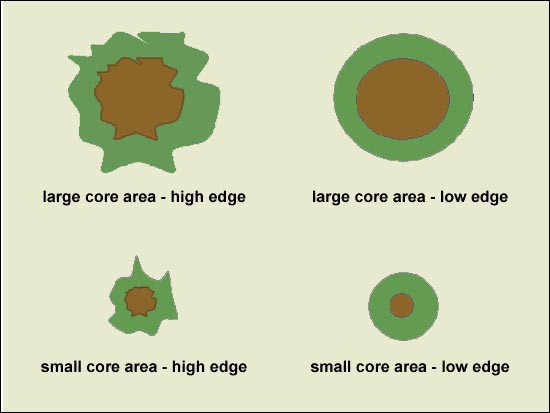 Pues bien, imaginémonos que se desea realizar un diseño paisajístico en una región dominada por cultivos (es decir en una matriz) entre los cuales permanecen bosquetes de vegetación potencial (es decir parches) de diverso tamaño forma y aislamiento (distancia a los restantes). El objetivo debiera ser preservar al menos los mínimos posibles (e incluso potenciar el crecimiento de los necesarios), de tal modo que también lo haga la biodiversidad existente y la funcionalidad del espacio geográfico que los sustenta. Para ello, parte de la biota debe poder trasladarse de unos a otros, ya sea activamente (muchos animales y propágalos de los que se diseminan asociados a los cuerpos de los primeros) como de forma pasiva (dispersión de propágalos de los vegetales por el viento). No cualquier configuración de estos bosques-isla (atendiendo también a su tamaño) resulta ser válida.  Resulta indispensable una distribución espacial óptima que garantice, o incluso aumente, la variedad de organismos salvajes existentes.