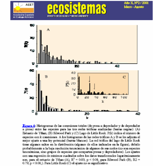 Podemos concluir que las especies más conectadas desde un punto de vista trófico en un ecosistema son especies clave, dado que su eliminación tiene grandes efectos sobre la estabilidad y persistencia de la red (Bond 1993). Algunos estudios anteriores corroboran el papel clave de las especies más conectadas tróficamente. Al igual que las observaciones de Wilson (…) menciona los efectos que ha tenido la extinción de grandes herbívoros en distintos ecosistemas, trayendo consigo una nueva distribución de la vegetación, así como la extinción de un gran número de especies. (…). En un trabajo todavía en preparación sobre comunidades de insectos parásitos (parasitoides) de otros insectos, hemos observado el papel estabilizador de las especies más conectadas (hiperparasitoides) sobre el recurso base (el insecto herbívoro que produce agallas en una planta). En estas comunidades, la tasa de parasitismo sobre el herbívoro es menor cuanto mayor sea el número de conexiones de los hiperparasitoides, garantizando de este modo la persistencia del recurso base y, por tanto, de la comunidad entera. Estas redes muestran también una arquitectura de sus conexiones de tipo pequeños-mundos.
