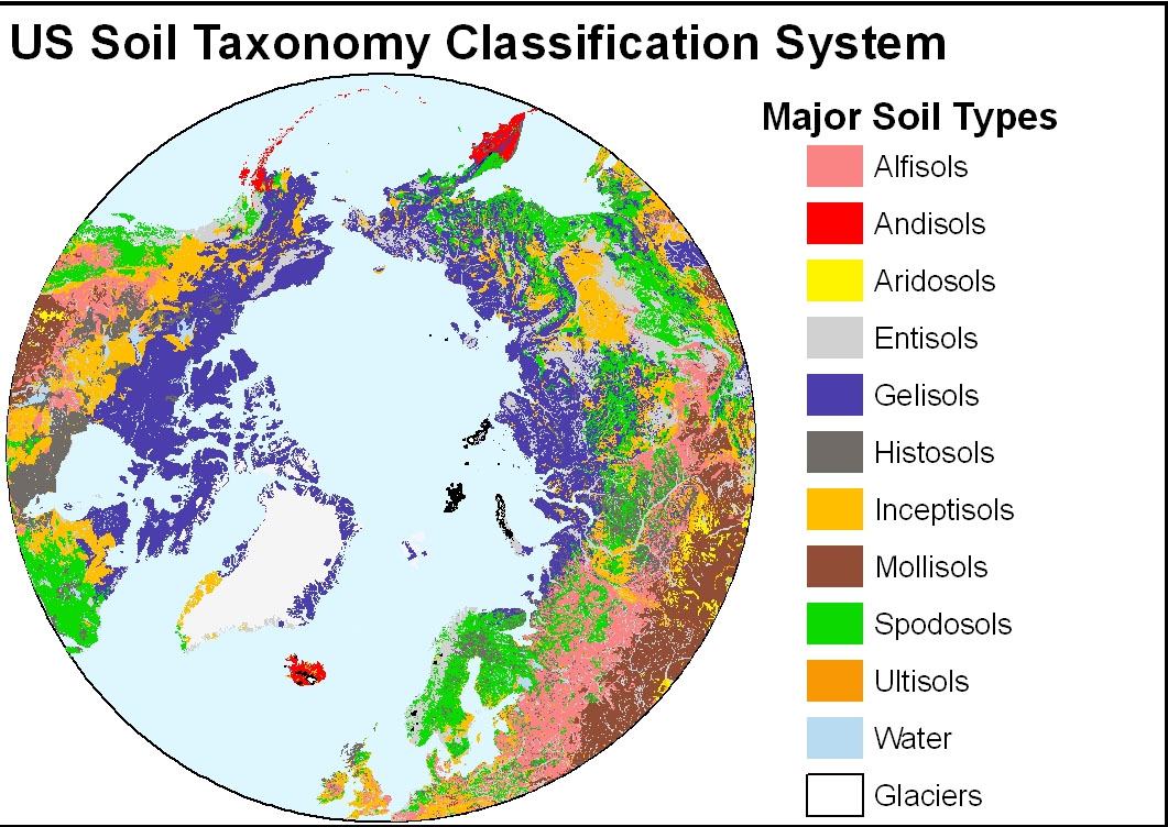 Mapa de suelos circumboreales según la USDA Soil Taxonomy