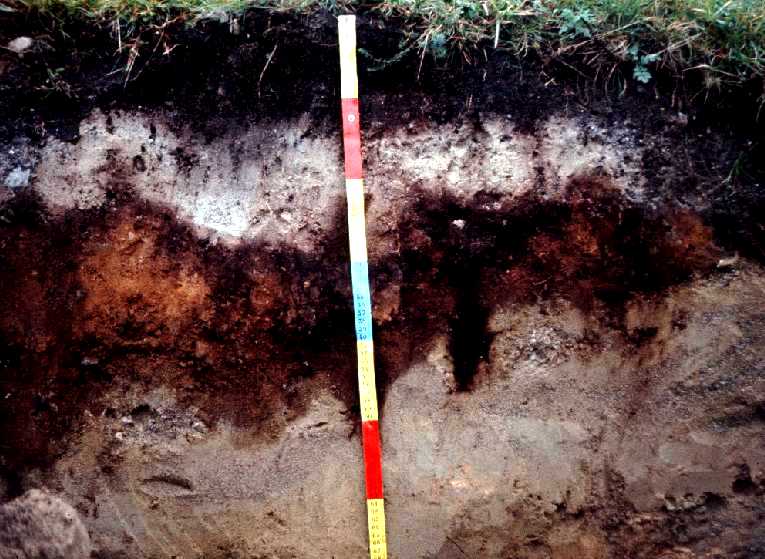 3. Los horizontes de lavado, en el que los minerales más fáciles de descomponer por la acción del clima, organismos y materia orgánica, desprenden partículas (limos arcilla, moléculas orgánicas, nutrientes) al siguiente horizonte. Se trata de los horizontes “E”.