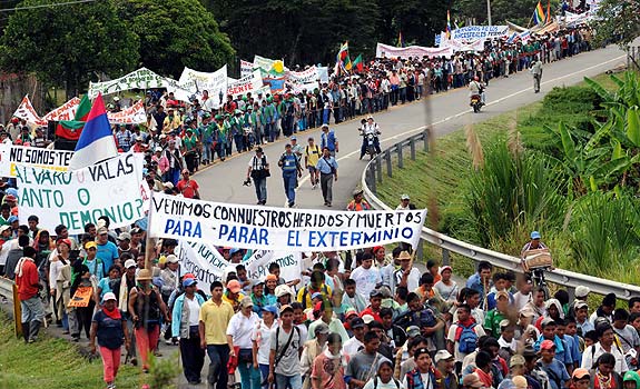 Para nadie es un secreto que la guerrilla se aprovecha de estos movimientos, lo cual le da pretexto al Gobierno para estigmatizarlos y desconocer que han sido precisamente esas comunidades las que han liderado un movimiento de resistencia para impedir que las Farc y, en general, los actores armados las involucren en el conflicto, y que por eso les han asesinado a sus líderes. «El Gobierno no ha entendido que la guerra no nace en nuestros pueblos sino en mundos ajenos», dice Berito Cobaría, jefe de la comunidad u’wa. El objetivo de las protestas indígenas es hacer visibles problemas que no han tenido solución pero en ningún caso generar violencia, nosotros no fabricamos las minas ni los helicópteros bombarderos».